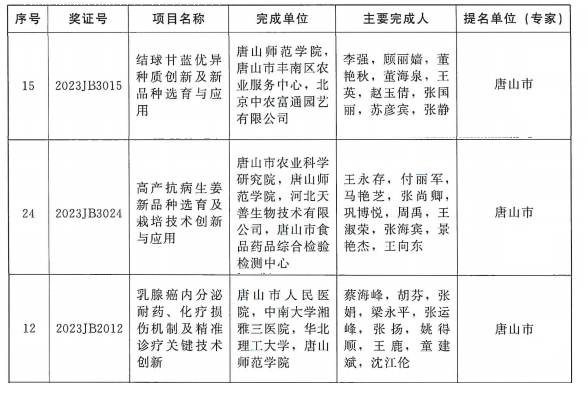 马艳芝教授、王向东教授参与的“高产抗病生姜新品种选育及栽培技术创新与应用”项目获河北省科学技术进步奖三等奖。