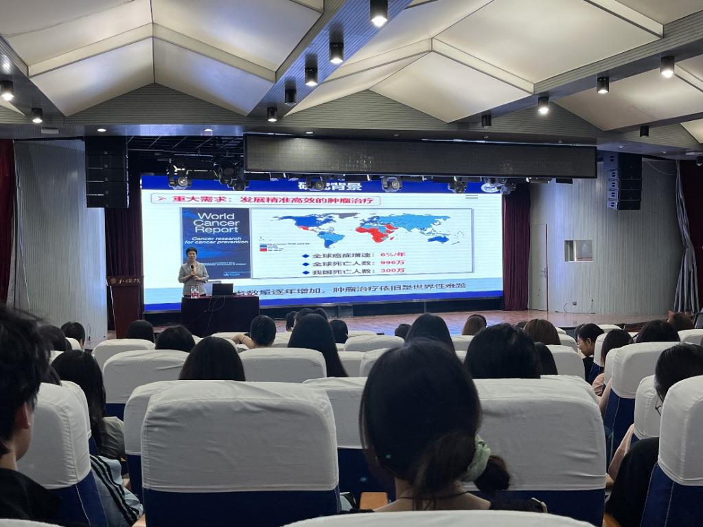高大威教授首先介绍了癌症治疗领域面临的挑战,特别是肿瘤复发和转移的问题,并阐述了肿瘤间质高压对药物传输的影响,分享了其团队在仿生纳米淋巴系统设计合成方面的最新研究成果。随后,高大威教授详细讲解了纳米载药系统和纳米生物材料在疾病协同治疗中的应用,以及在国际上首次提出的仿生纳米淋巴和水动力治疗的研究策略。此外,高大威教授还就科研过程中的选题、破题和解题过程与在场师生进行了深入交流,解答了师生们在科研探索中遇到的各种问题。