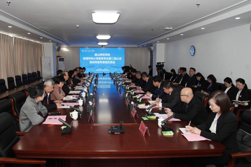 20日上午,专家组现场考查意见反馈会在大学道北校区综合楼九层第一会议室举行。专家组成员,唐山市教育局党组书记、局长史林友、唐山市教育局高教职成处一级主任科员张冀东、全体校领导出席会议。学校相关职能部门负责人,参与认证的物理科学与技术学院和教育学院领导班子成员、专业负责人参加会议。