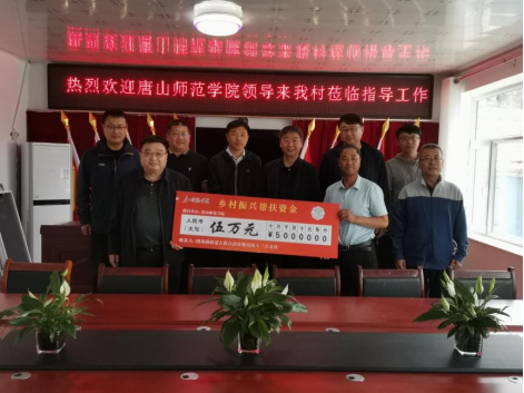 孙政院长与腰站镇党委书记张博俐(左三)在上三合义村进行帮扶资金交付仪式