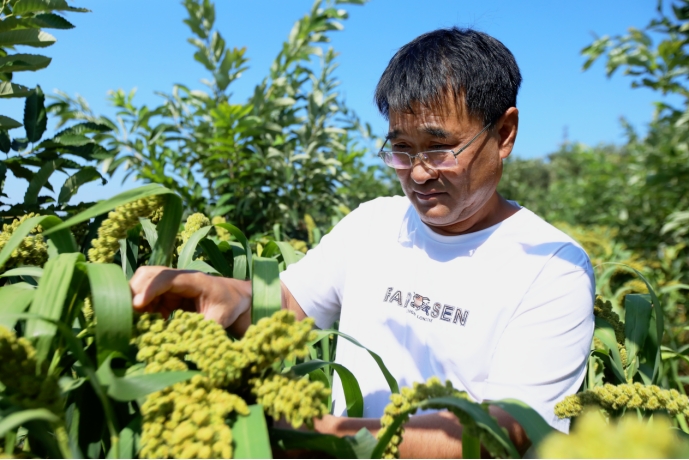 刚刚从田间忙碌完的汉儿庄镇杨家峪村的老农陈玉儒难掩丰收的喜悦,一边指着30年树龄的栗树林,一边擦去额头的汗水,满脸笑容地说道:“以前这个树下啥都没有种,就这么荒着,今年刘教授推广新品种谷子,我们起初也不信,就每家勉强只种了一小块。”