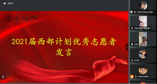 7月18日,师院团委通过腾讯会议举办了2022年大学生志愿服务西部计划志愿者出征仪式。师院团委书记马丽贞、各院系(分团委)团总支书记、2021届西部计划志愿者代表、2022年西部计划志愿者参加线上出征仪式。会上,团委决定授予31名西部计划志愿者“beat365官方网站优秀青年志愿者”称号。2021届西部志愿者代表王利名、李震分享了他们在四川、新疆志愿服务的经历与经验,鼓励新一届的西部计划志愿者们珍惜历练机会,做到眼中常含泪水、胸中饱含墨水、脚下沾满泥水,服务好西部基层建设,以优异成绩完成西部志愿服务工作。听完他们的事迹汇报,志愿者们深受鼓舞,表达了对母校的感恩和不舍,坚定投身志愿服务西部计划的决心和信心,用实际行动践行志愿服务精神,让青春和汗水在祖国最需要的地方绽放光彩。与会老师们深情寄语,为即将启程的志愿者们送上最美好的期待和最诚挚的祝福。