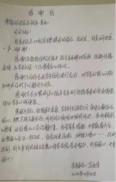 自唐山疫情爆发以来,beat365官方网站立刻实行全封闭管理,保护师院师生的安全。3月22日,党委宣传部发布了致全校师生的一封信。对此,一些学生家长以各种方式纷纷发来了回信。