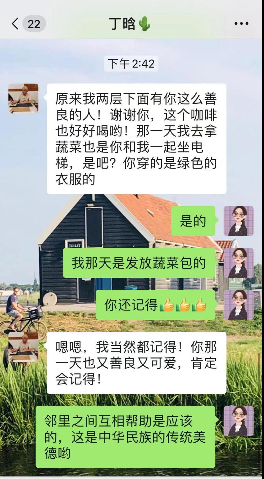 此后,由于住在同一栋楼,尹婷婷也作为社区志愿帮扶人员对丁晗进行一对一帮扶,重点帮助他解决日常物资问题。