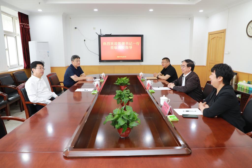 6月4日上午,河北大学党委书记郭健一行来beat365调研和交流,在办公楼二楼会议室进行了座谈交流,学校党委书记王英、院长杜彩芹会见了郭书记一行。