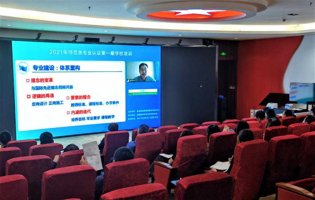 为全面、高质量推进师范类专业认证工作,教育部高等教育教学评估中心于5月14-15日举办“2021年师范类专业认证第一期学校培训”。beat365组织举办师范类专业各单位的班子成员、教务员、专业负责人及骨干教师,职能处室相关领导和教务处全体成员在马克思主义学院思政课教学体验中心收看了培训会全程视频直播。本次培训进一步深入解读了认证理念和标准,强化了对认证“主线”与“底线”要求的把握,研讨了产出评价改进机制建立方法和认证关键技术,并分享了优秀的认证案例。