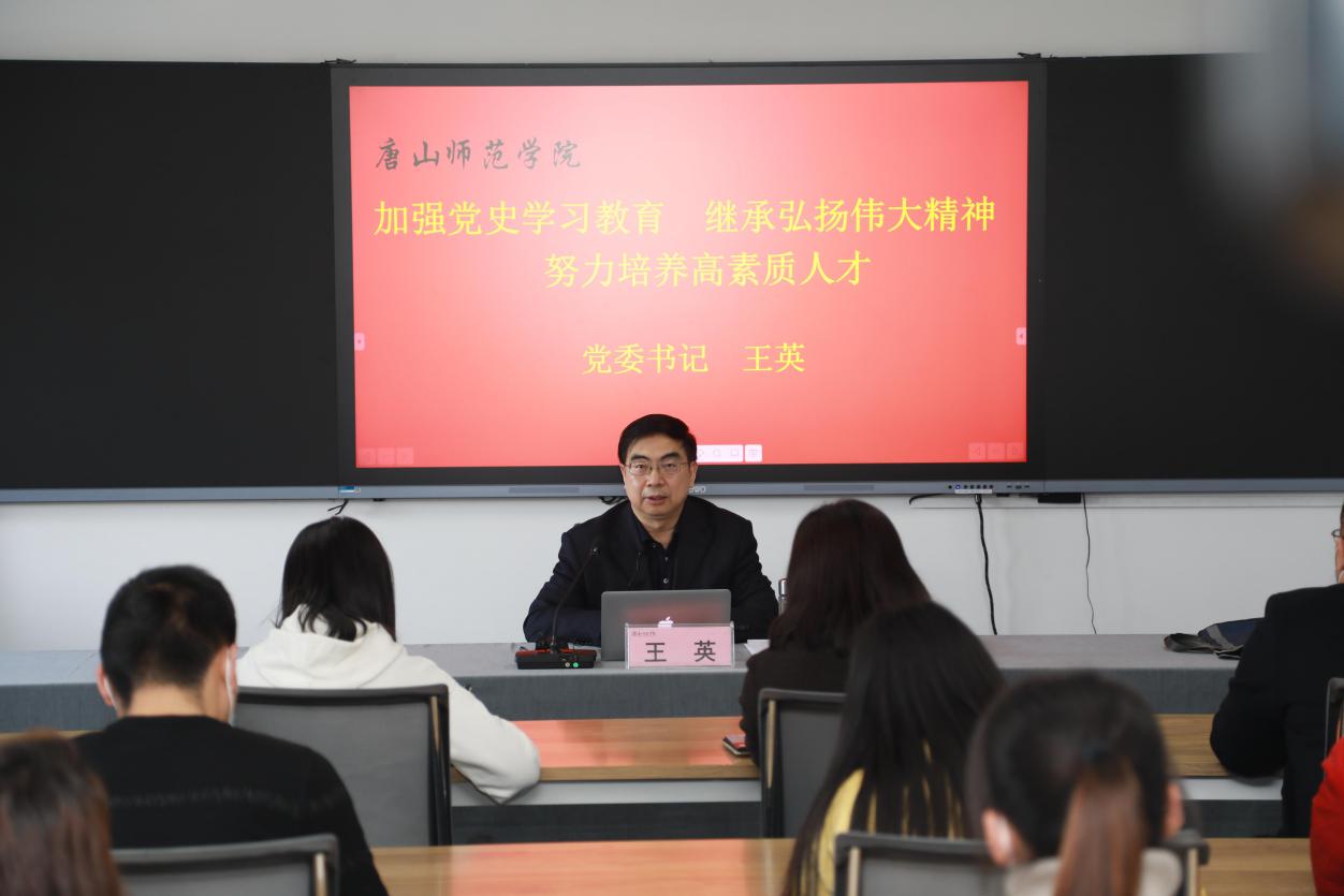 首先,王英书记深刻地阐述了以中国共产党成立100周年为契机,加强党史学习教育的重大意义。号召全体学生要站在讲政治的高度,学习党史,提升素养;指导广大青年学生从党的百年伟大奋斗历程中汲取继续前进的智慧和力量,从弘扬党在各个历史时期铸就的伟大精神、深入挖掘蕴含其中的丰富内涵和时代价值中听党话,从以习近平同志为核心的党中央团结带领全党全国各族人民统筹推进伟大斗争、伟大工程、伟大事业、伟大梦想中跟党走。进而深刻地阐述了中国共产党为什么“能”、马克思主义为什么“行”、中国特色社会主义为什么“好”。
