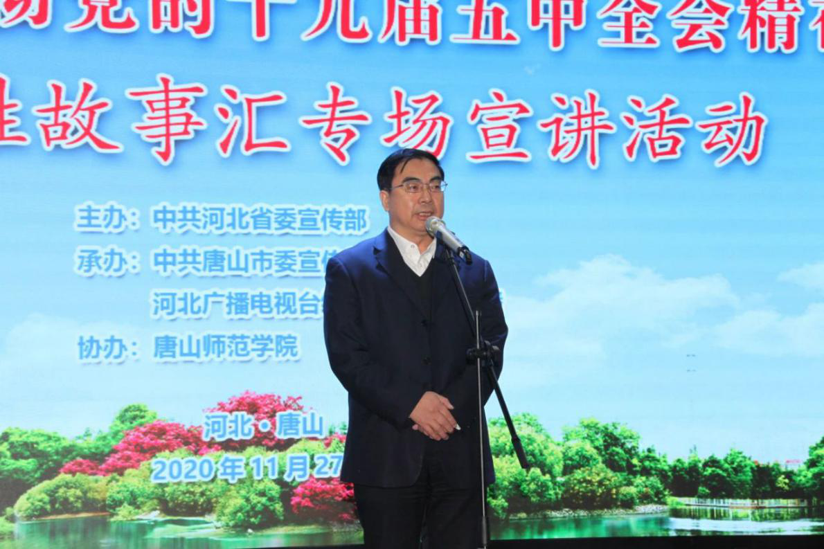 11月27日上午,由中共河北省委宣传部主办,中共唐山市委宣传部、河北广播电视台经济(故事)广播承办,beat365协办的学习宣传贯彻党的十九届五中全会精神——365百姓故事汇专场宣讲活动在beat365大学道校区南院会议中心举行。出席活动的省市领导有省委宣传部部务会成员、二级巡视员贾敬刚、唐山市委宣传部副部长张梅艳、省委宣传部基层宣传教育处处长孙雷、省委宣传部基层宣传教育处二级调研员刘润苍、河北广播电视台生活频率群副书记、经济生活频率总监杨美楷、省委宣传部基层宣传教育处一级主任科员石立雄、市委宣传部宣传教务处李晓兰处长。会前,党委书记王英、校长杜彩芹、党委副书记孙立军接见了各位领导并进行了亲切交流。来自全省各地的百姓故事汇优秀宣讲选手,中央和省、市主要新闻媒体记者,王英书记、孙立军副书记及师生代表参加宣讲活动。张梅艳副部长、王英书记分别向大会致辞。