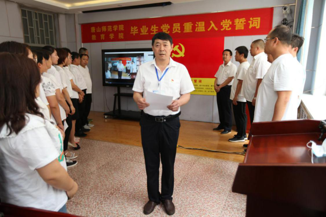 教育学院党委书记陈克良面对镜头,通过网络,对云在线的67名毕业生党员动情地说道:“年轻的同志们,你们新的人生即将启程,在未来的日子里,希望你们牢记誓词,坚定理想信念,发扬为党和人民的事业敢于流血牺牲的大无畏革命精神,时刻听从从组织召唤,服从组织安排,任劳任怨,无私奉献,永远保持党员的先进性,以实际行动为中华民族的伟大复兴贡献力量!”