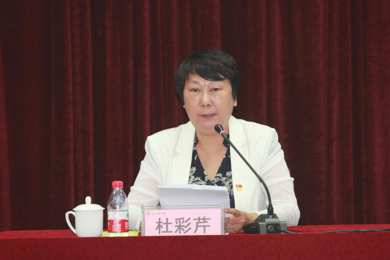 最后,杜彩芹校长就如何贯彻落实动员会精神提出了三点要求:一要坚持思想引领,提高政治站位,把思想和行动统一到习近平总书记重要讲话精神和党中央决策部署上来,把主题教育作为重大政治任务抓牢抓实。二要坚持效果导向,达到预期目标,做到认识到位、措施到位、工作到位。三要坚持统筹兼顾,推进各项工作,全校党员干部要坚持围绕中心,服务大局,确保主题教育取得扎实成效。