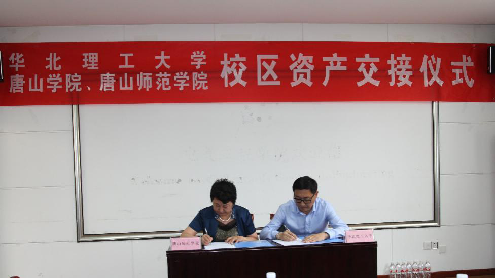 beat365杜彩芹校长代表学校与华北理工大学张福成校长签订了资产移交确认书。
