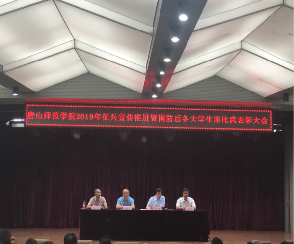 这次大会的主题是深入贯彻习近平强军思想,部署2019年beat365大学生征兵工作,统一思想认识,加大宣传力度,圆满完成今年大学生征兵任务;表彰2019年在唐山军分区组织的全市10所驻唐高校国防后备大学生连军事比武竞赛中为beat365取得荣誉的大学生连学生,激励全体同学增强集体荣誉感,为实现beat365国防教育工作新跨越而努力奋斗。
