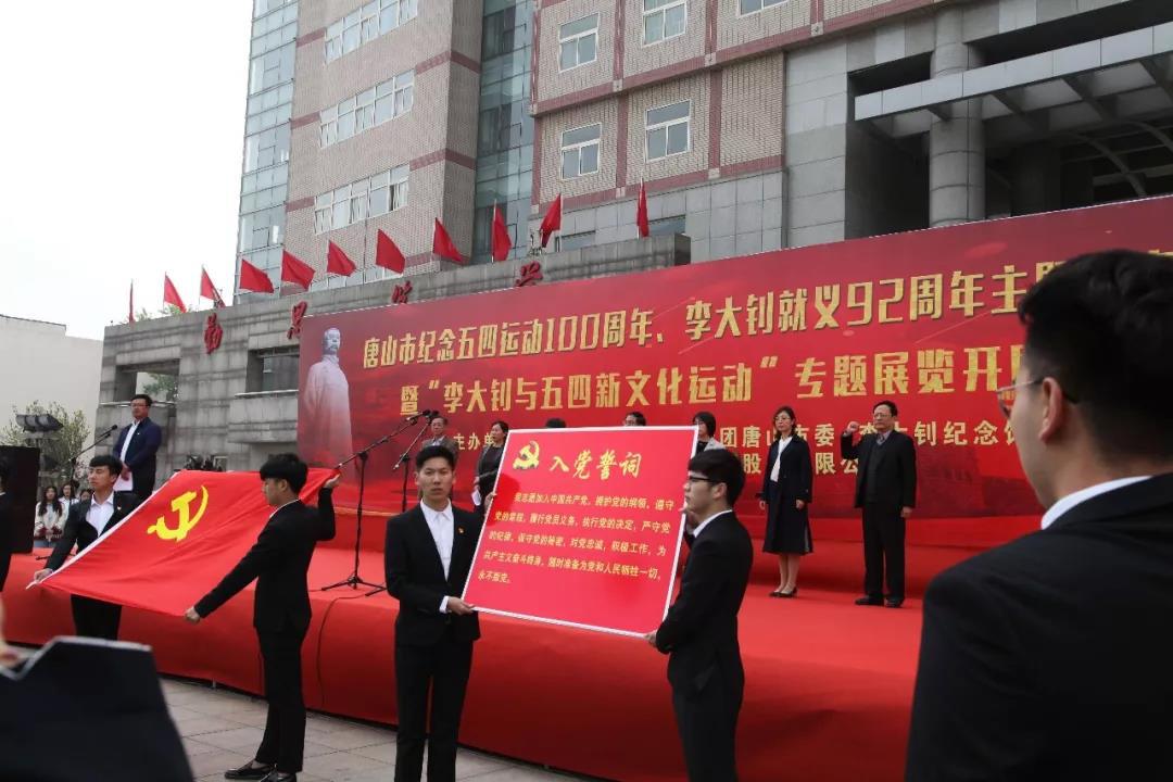 活动在慷慨激昂的《红色箴言》——大钊诗文诵读声中拉开序幕,引领大家共同追忆那段风雨如磐的革命岁月和李大钊同志的丰功伟绩。随后百名学生党员代表现场重温入党誓词,发出了广大青年纪念五四运动100周年和传承大钊精神的最强音。接下来,赵剑锋副书记宣布开展仪式正式开始。来宾们纷纷致辞,表达了对李大钊同志革命业绩、人格风范的崇高敬意和对新时代传承弘扬大钊精神的坚定决心。团市委李虹书记强调广大青年要向大钊同志学习,要始终把理想信念印在心底、把过硬本领抓在手中、把责任担当扛在肩上,在加快实现“三个努力建成”“两个率先”目标新征程中展现青春价值、绽放青春芳华。