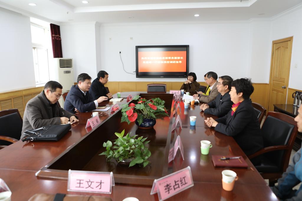 3月26日下午,市委统战部常务副部长朱建峰、副调研员马继泉、党外知识分子处处长王毅一行来beat365调研指导,beat365党委书记王英、院长杜彩芹、党委副书记赵剑锋,各民主党派负责人及党外知识分子代表参加了会议。