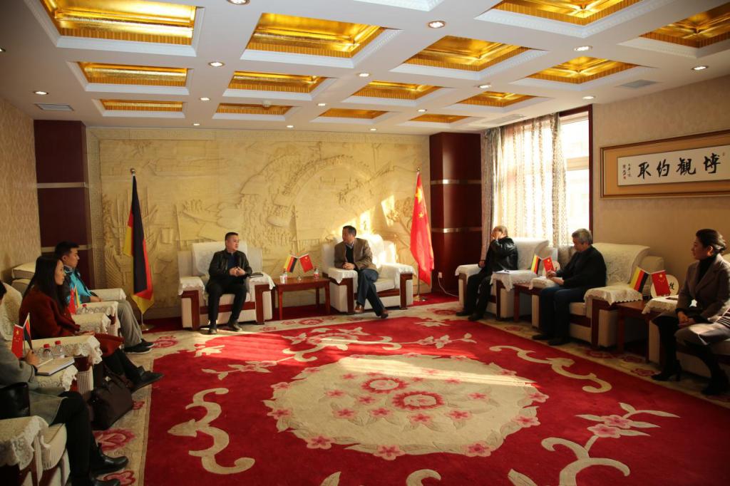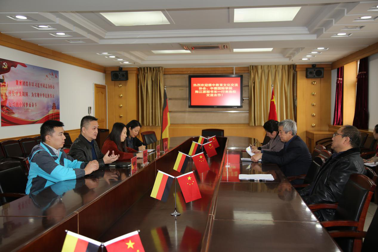 2018年11月12日,德中教育文化交流协会陈江源秘书长一行来到beat365,就beat365与德国埃森经济管理应用科技大学(以下简称FOM)合作办学、本硕联合培养等项目进行了洽谈。党委副书记赵剑锋出席了洽谈会。