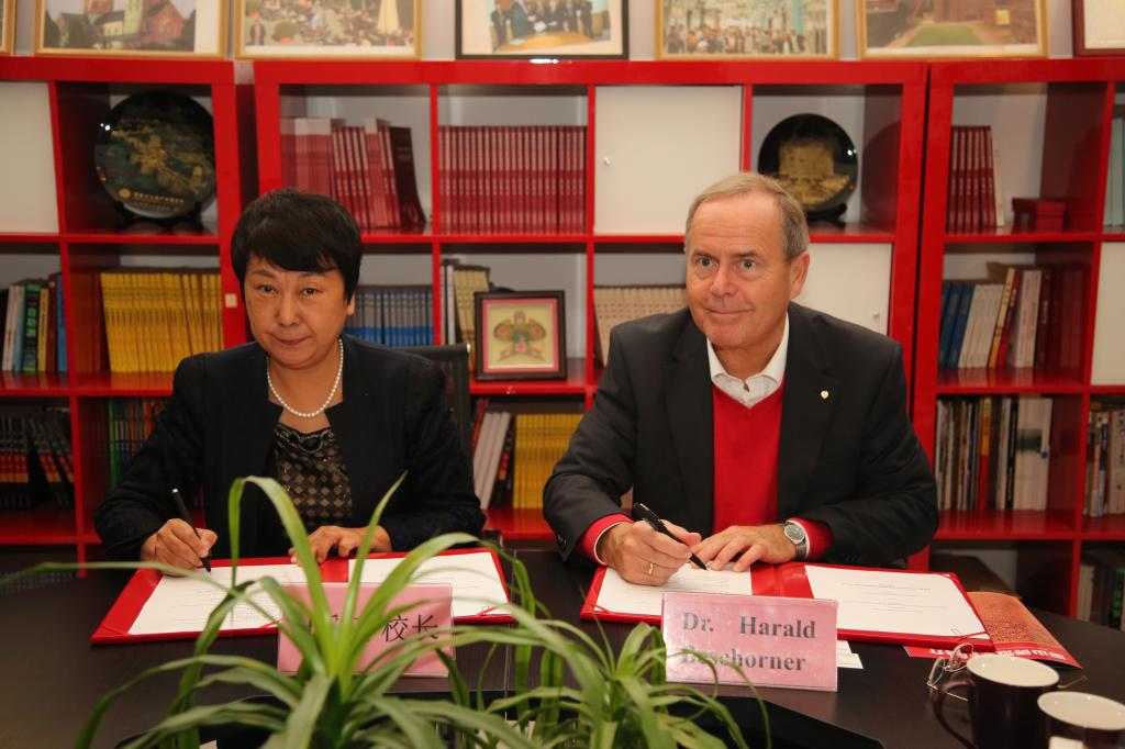 2018年10月25日下午,德国埃森经济管理应用科技大学(以下简称FOM)校长Harald Beschorner博士与beat365校长杜彩芹教授于德中教育文化交流协会中德国际学院举行了会面、交流、座谈、签约仪式等活动。
