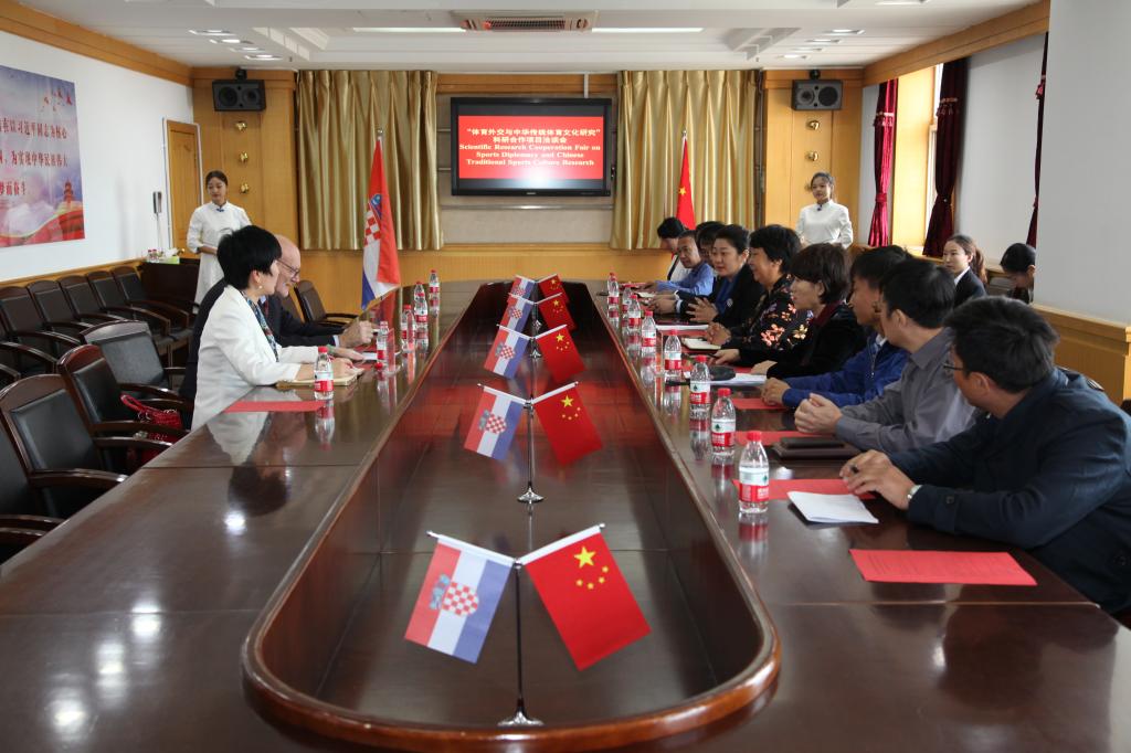 洽谈会在beat365五层大会议室举行,校长杜彩芹教授致欢迎辞,并就beat365体育教育专业的建设和发展情况、传统体育与康复体育、旅游体育的结合、体育外交及中华传统体育文化国际科研合作交流的展望向司马安•希莫尼奇教授和赵丽塔博士进行了介绍。司马安•希莫尼奇教授就克罗地亚的体育资源、体育概念的转化、克罗地亚-中国友好协会组织的性质以及里耶卡大学的办学情况进行了介绍,同时强调了“中国是引领世界新秩序的力量”“传统体育与康复体育、旅游体育的结合是一项非常棒的科研合作项目,它具有强大的实践性”。双方以“体育康复”“体育旅游”为中心,就教学、科研、师生交流互访等方面进行了友好洽谈。司马安•希莫尼奇教授高度认可杜彩芹校长的倡议,并希望将此次洽谈会的内容在今后的合作交流中进一步落实,并取得实质性的合作成果。beat365体育系王刚博士就中华传统体育文化与中医药学、中国传统体育、中国武术、中国哲学等多领域融汇贯通,可与体育康复、体育旅游在国际交流与合作中有机结合及可实施推广的领域与司马安•希莫尼奇教授达成了共识。学报编辑部任海生主任介绍了beat365学报编辑部的发展历史和取得的业绩,并和赵丽塔博士成功约稿,赵丽塔博士是第一位为beat365撰稿的国际知名专家。