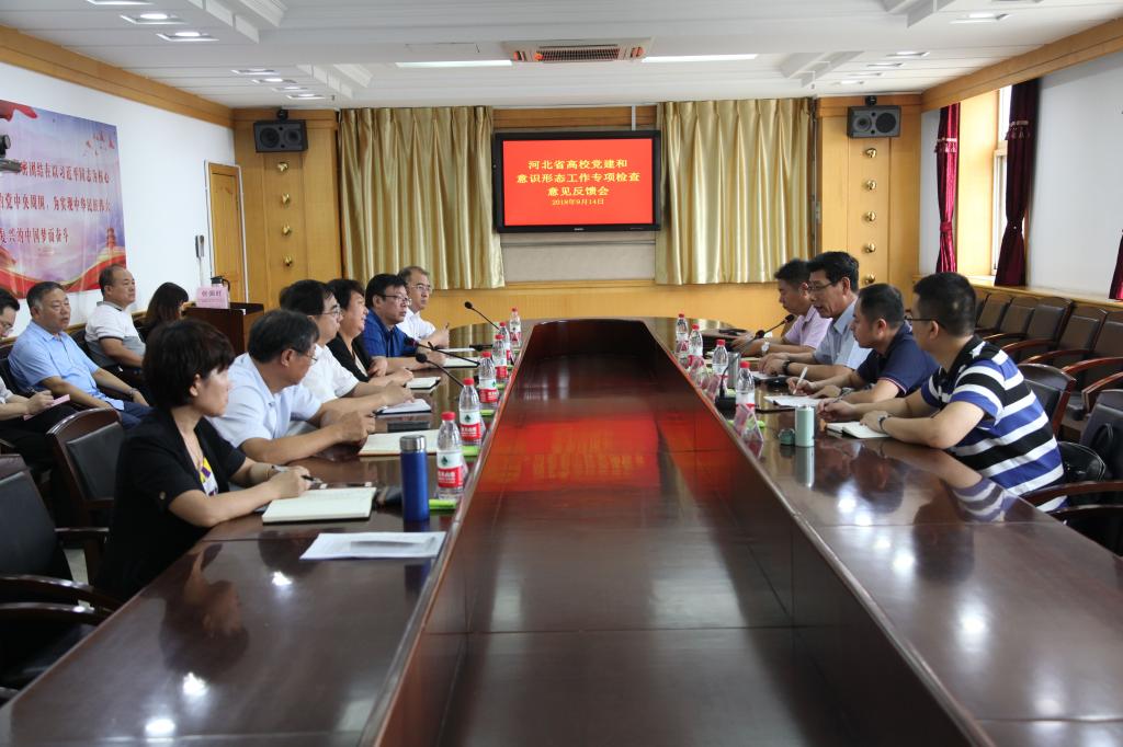 9月13日,全省高校党建和意识形态工作专项检查组组长杨亚忠,成员祖磊、刘全明、刘钢一行来到beat365,对党建工作落实情况、意识形态相关工作情况、安全稳定工作情况、开学前相关工作、众创空间建设等方面进行检查督导。党委书记王英、院长杜彩芹及其他领导班子成员出席汇报会,相关处室主要负责同志参加会议。