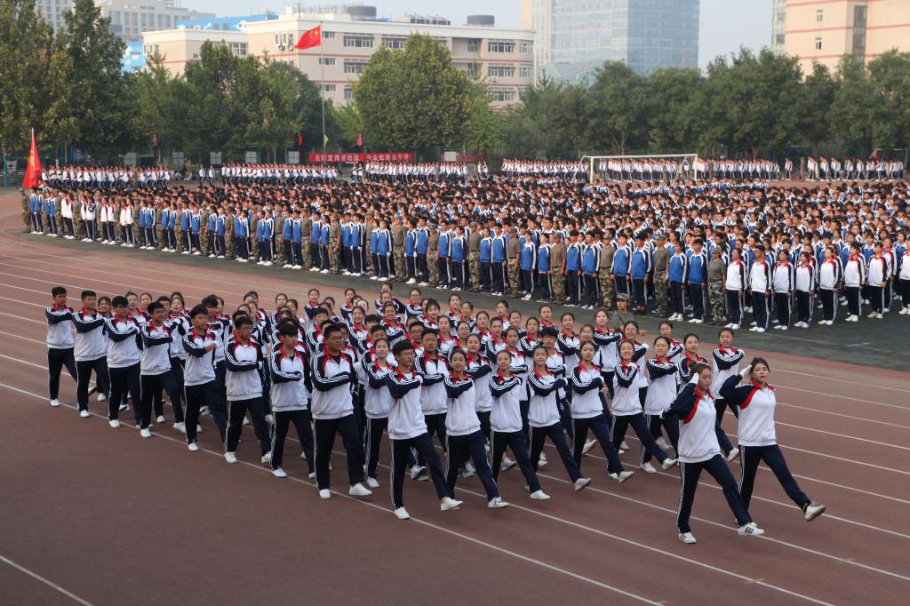 五星红旗伴随着雄壮的国歌声缓缓升起,大会正式拉开帷幕。王英书记宣布分列式表演开始。全体参训学生踏着整齐有力的步伐接受领导校阅。分列式表演结束后,部分学生进行了应急救护技能展示。今年的军体拳表演,成为本次大会的又一亮点。