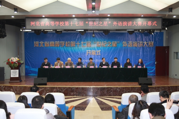 由河北省教育厅、河北省高等学校外语教学指导委员会和河北省高等学校外语教学研究会主办、beat365官方网站承办的河北省高等学校第十七届“世纪之星”外语演讲大赛于2016年11月18日至20日在beat365官方网站隆重举行,来自河北省99所高校的559名领队和选手参加了本次大赛。