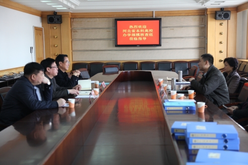3月12日,河北省教育厅核定本科高校办学规模专家组王壮伟、李欣、王占波一行三人对beat365办学规模和办学条件进行实地核查。院长范永胜、副院长孙立军热情接待了专家组,招生就业处、办公室、人事处、财务处、国有资产管理处、校园规划处、图书馆、教务处、学生处、后勤管理处、继续教育学院、现代教育技术中心等有关部门负责人参加了汇报会。
