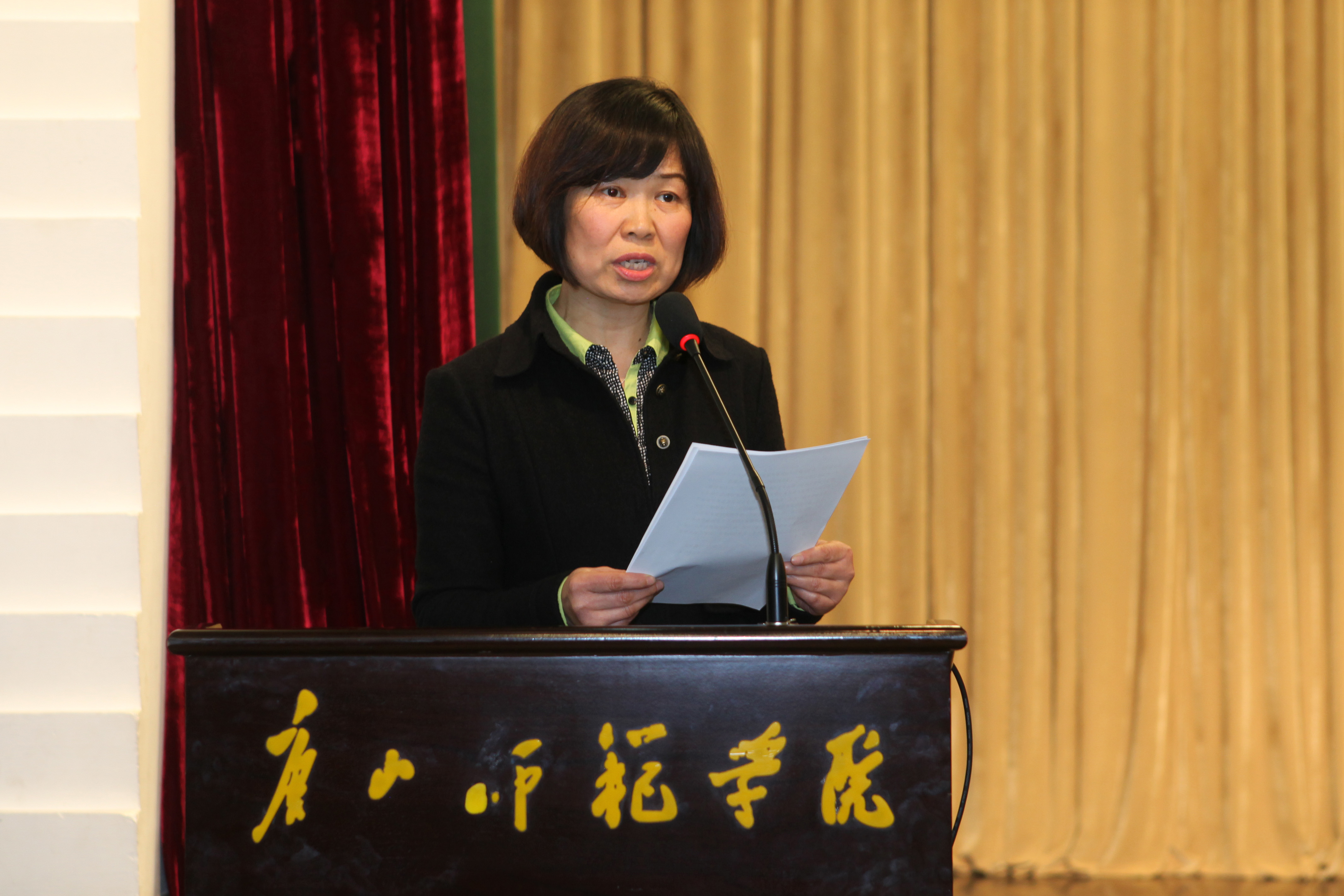 然后,进行会议交流。先进集体代表体育系党总支副书记唐朝晖、优秀辅导员代表社会科学部潘素芳、优秀班主任代表中文系赵立杉分别做了经验介绍和大会交流。唐朝晖老师围绕“体育生教育和管理的措施与方法” 从针对问题抓管理、心中有爱促成长、面向市场育人才三个方面介绍了体育系在学生工作中形成的行之有效的教育管理模式。潘素芳老师围绕“适应学生发展要求,服务学生成长”从为学生成长成材服务、引领学生思想进步、增强学生就业核心竞争力三个方面跟大家交流了做好辅导员工作的经验体会。她还着重介绍了新生入学教育1+1互助帮扶活动、读书分享、科研立项、精彩一课等四项创新活动。赵立杉老师围绕“班级管理工作”从以生活管理为主线,注重细节管理,做好思想工作;以公益活动为抓手,深化德育工作,创设优良班风;以专业实践为平台,助推教学工作,打造务实学风;以就业、创业为导向,落实就业工作,提升职业素养四个方面做了班级管理理念经验交流。