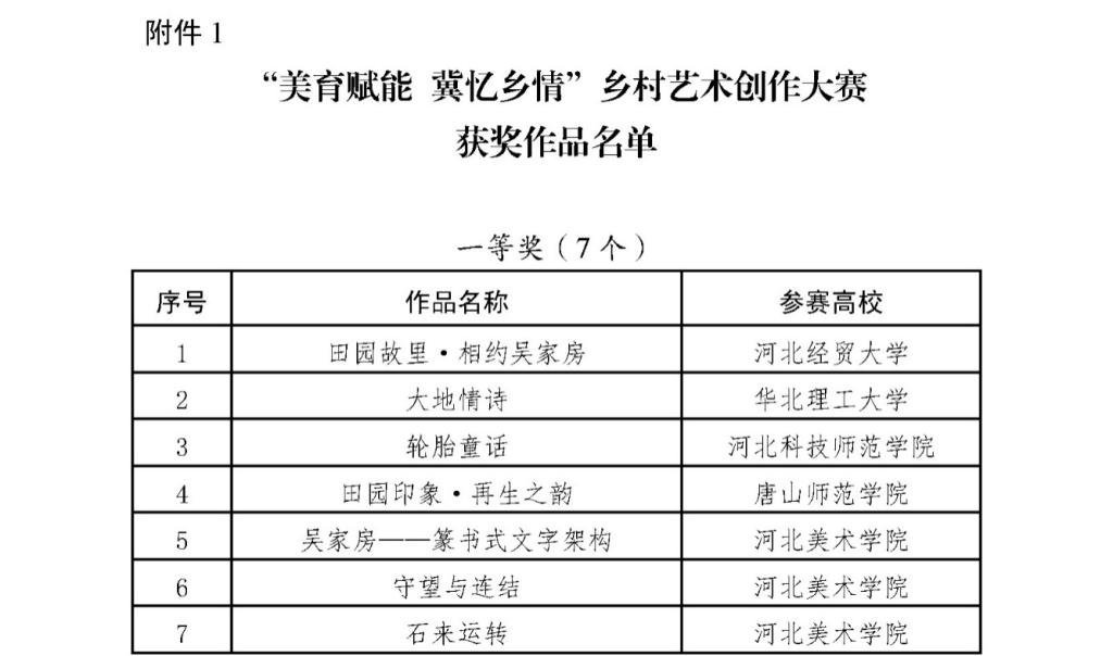 由河北省教育厅、河北省文化和旅游厅、河北省农业农村厅联合主办的“美育赋能 冀忆乡情”乡村艺术创作大赛圆满落幕。经过入围初评、落地展示、现场评审等多轮激烈角逐,beat365官方网站美术学院在此次大赛中脱颖而出,《田园印象·再生之韵》作品荣获一等奖,同时获得优秀指导教师奖及优秀组织奖。