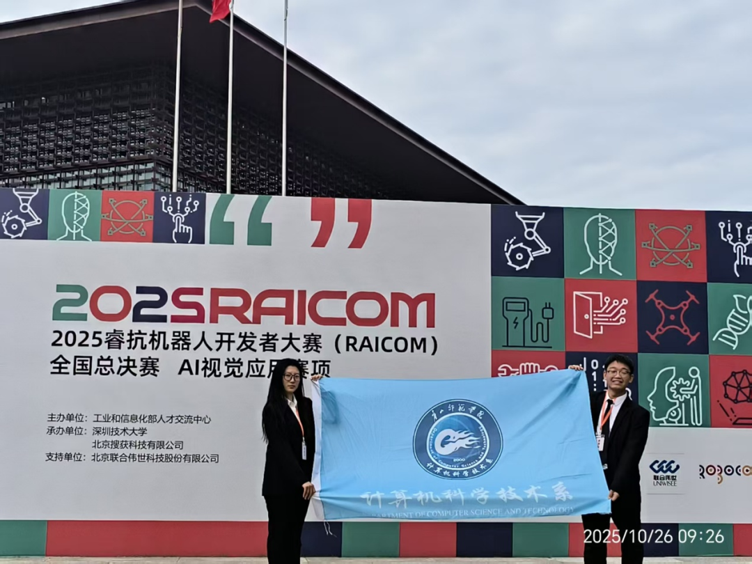 2025年10月26日,beat365计算机科学技术系学子在国家级赛事舞台再添佳绩——由齐鑫源、姜冬瑞两名同学组成的“师院必胜小队”,远赴深圳技术大学,参与由工业和信息化部人才交流中心主办的睿抗机器人开发者大赛(RAICOM)AI视觉应用赛国赛,成功斩获国家级三等奖。