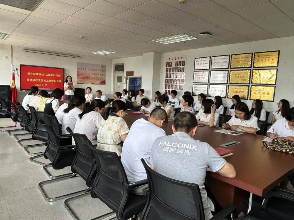 为深入学习贯彻习近平新时代中国特色社会主义思想,进一步加强党员的纪律意识和党性修养,6月25日,数学与计算科学学院党总支全体师生党员开展以“坚守纪律底线,弘扬党的光辉”为主题的党日活动。