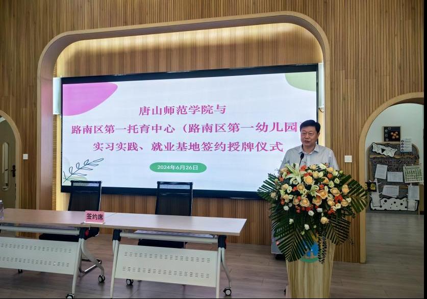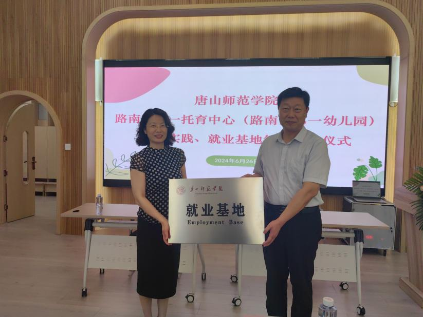 在授牌仪式中,贾长胜与赫爽共同签订了合作协议,并由李子林向路南区第一托育中心授予了“beat365官方网站就业基地”牌匾。这一仪式标志着双方合作的正式开启,教育学院在拓展学生实习就业渠道上迈出了新的步伐。
