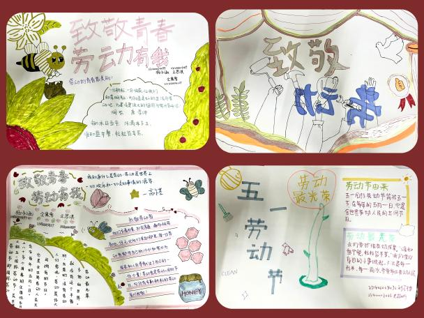 劳动是人类社会的本质活动,人类劳动是价值创造的源泉之一。同学们用五彩的画笔在洁白的画纸上描绘出对劳动的美好憧憬,每一张手抄报都是一个多彩的劳动世界,体现了同学们的创意和巧思。