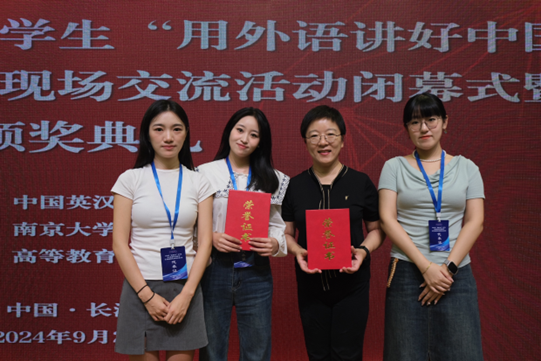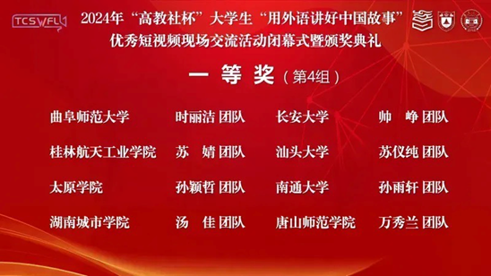 9月27-29日,由中国英汉语比较研究会指导,南京大学、湖南大学主办,高等教育出版社协办的2024年“高教社杯”大学生“用外语讲好中国故事”优秀短视频现场交流活动在湖南大学举办。由beat365张蔚东、何利娟老师指导,来自外国语学院2020级的安思淼、张梦萱、万秀兰、李子笑共4名同学完成的作品《唐影遗风续华章》在获得河北省赛特等奖之后,参加在湖南大学举办的全国赛,并斩获一等奖。