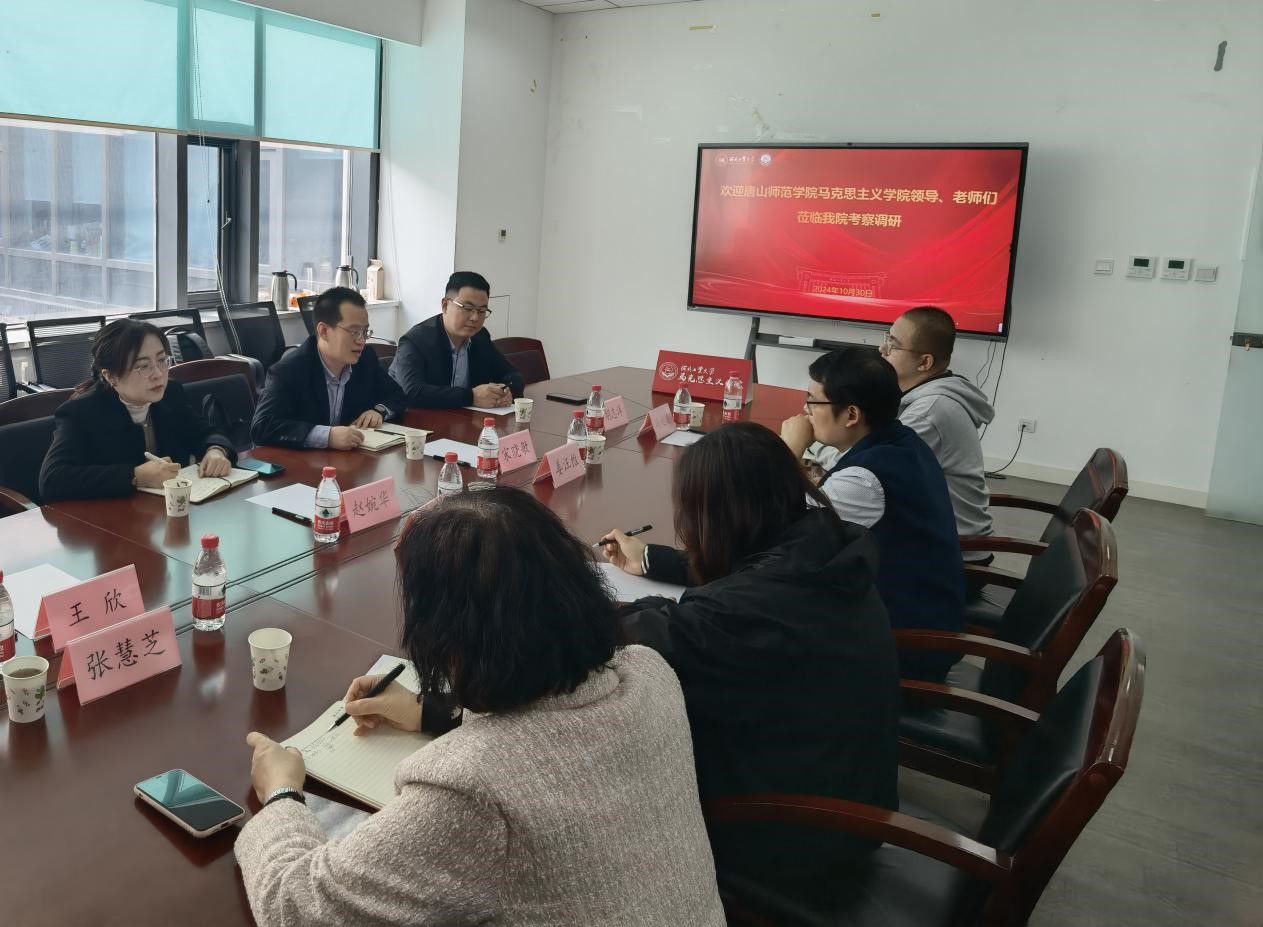 为进一步推进马克思主义学院学科建设与高质量发展,10月30日,beat365马克思主义学院执行院长宋晓敏、副院长赵婉华一行4人赴河北工业大学开展学习交流活动。河北工业大学马克思主义学院院长孙琳琼、党委副书记兼副院长姜汪维、副院长张慧芝、形势政策教研室主任冯赵建博士、科研秘书乔天怡老师参加了本次交流活动。