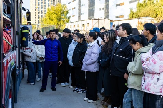 随后,消防特勤大队一站的同志们带领师生参观了消防车,详细介绍了消防车的功能和用途。针对不同应急处理情况,每种车辆都配备了不同的消防器材和设备,能够应对各种复杂的火灾和救援场景,消防同志们现场指挥师生对消防器材进行了实操。
