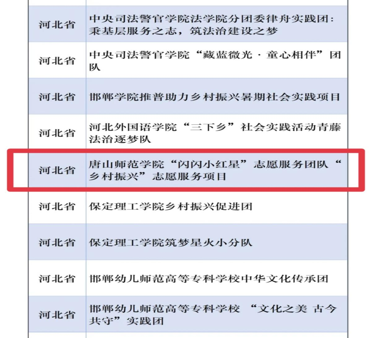 为鼓励广大青年学生在社会实践中受教育、长才干、作贡献,中国青年报社主办了2024年大学生社会实践“千校千项”网络展示活动。自活动启动以来,得到全国各地的青年学子积极响应,共收到作品3665份。最终经过作品申报、资格筛选、展示点赞等环节,遴选出1000项优秀实践项目,beat365官方网站“闪闪小红星”志愿服务团队“乡村振兴”志愿服务项目位列其中。这不仅是唐山高校中唯一成功入选的项目,更是“闪闪小红星”志愿服务团队继入选全国大学生科技志愿服务示范团队、全国“弘扬新时代雷锋精神,投身新征程”志愿服务团、全国大学生“乡村振兴”志愿服务团后获得的又一荣誉。