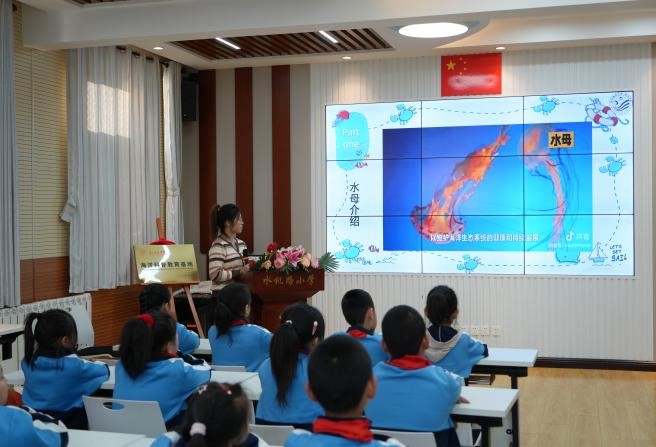 仪式最后,海洋学院海洋科普小讲师为小朋友们带来了一场生动有趣的海洋科普课《海洋生物—有趣的水母》,得到了小朋友们的热烈反响,小朋友们被神奇的海洋生物所吸引,纷纷表示要从自身做起,保护多样的海洋生物,同时也将向身边的人传递学到的海洋知识,共同为海洋发展贡献自己的力量。