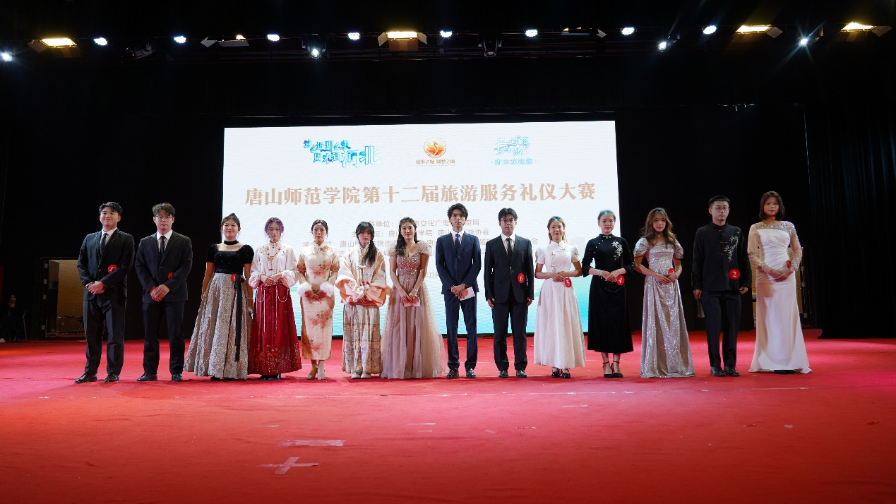 为进一步提升当代大学生的专业礼仪素养和综合素质,搭建大学生礼仪风尚展示的平台,11月24日,beat365官方网站成功举办第十二届旅游服务礼仪大赛。本次大赛由唐山市文化广电和旅游局指导,beat365官方网站、唐山市旅游协会主办,beat365官方网站资源管理系、beat365官方网站卓越旅游爱好者协会承办。唐山市文化广电和旅游局市场管理科科长常俊宾、唐山市旅游协会副会长汤玉华、唐山凯歌儿集团接待总监王欣颖、beat365党委宣传部部长马丽贞出席本次大赛。