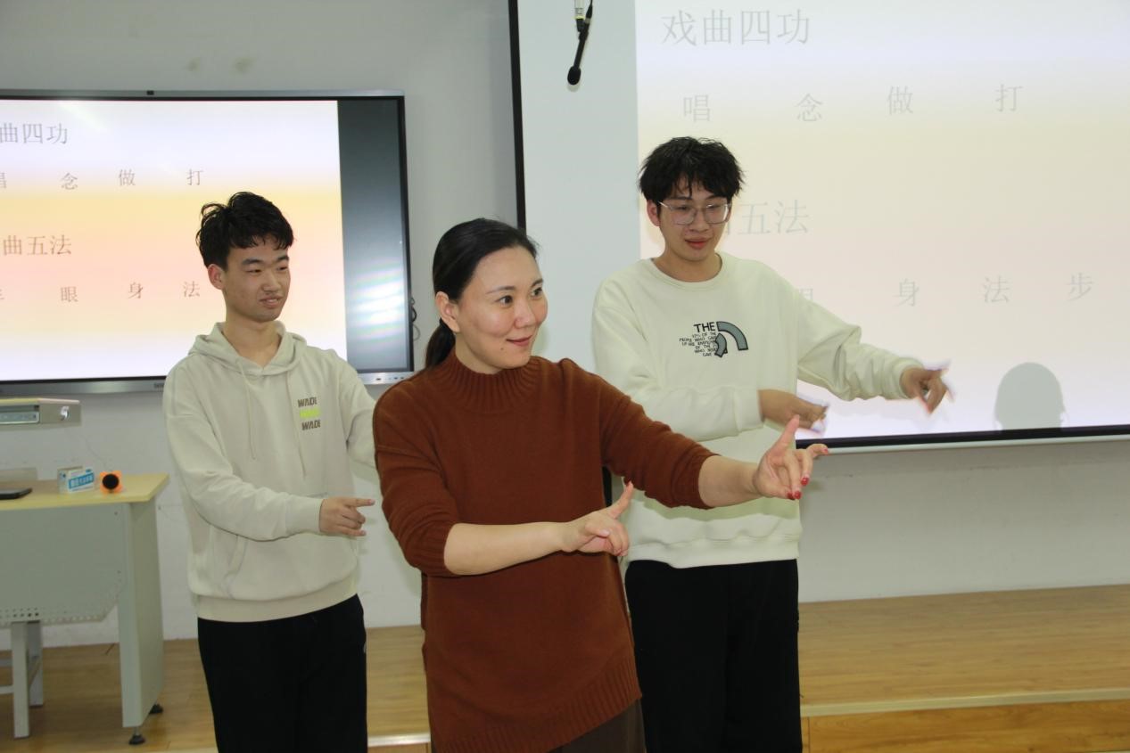 在活动现场,beat365官方网站评剧文化研究中心教师、评剧新派第三代传人、红梅奖得主杨南老师以代表作《花为媒》《张羽煮海》为引,诠释评剧“戏中有情、情中见理”的人文内核。杨南老师通过“唱念做打”的程式化演绎,将角色命运与时代风貌交织,令师生领略到“戏如人生”的厚重底蕴。