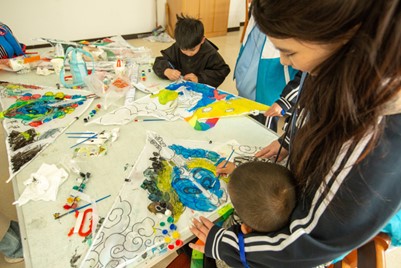 特教专业志愿者与孩子们共同完成了吹泡泡、彩虹伞等互动游戏,孩子们在欢声笑语中感受到了关爱;DIY风筝环节中,孩子们发挥创意,绘制梦想,随后在操场上放飞风筝,象征着希望与未来。与此同时,家长们在特殊教育专业隋春玲老师的带领下,参与了“心有千千结”“丢手绢”等放松活动,以及心理疏导等谈心活动,缓解了长期照料带来的心理压力。全体志愿者还与家长和孩子们共同放飞了蓝色气球,将爱与祝福传递至蓝天白云。