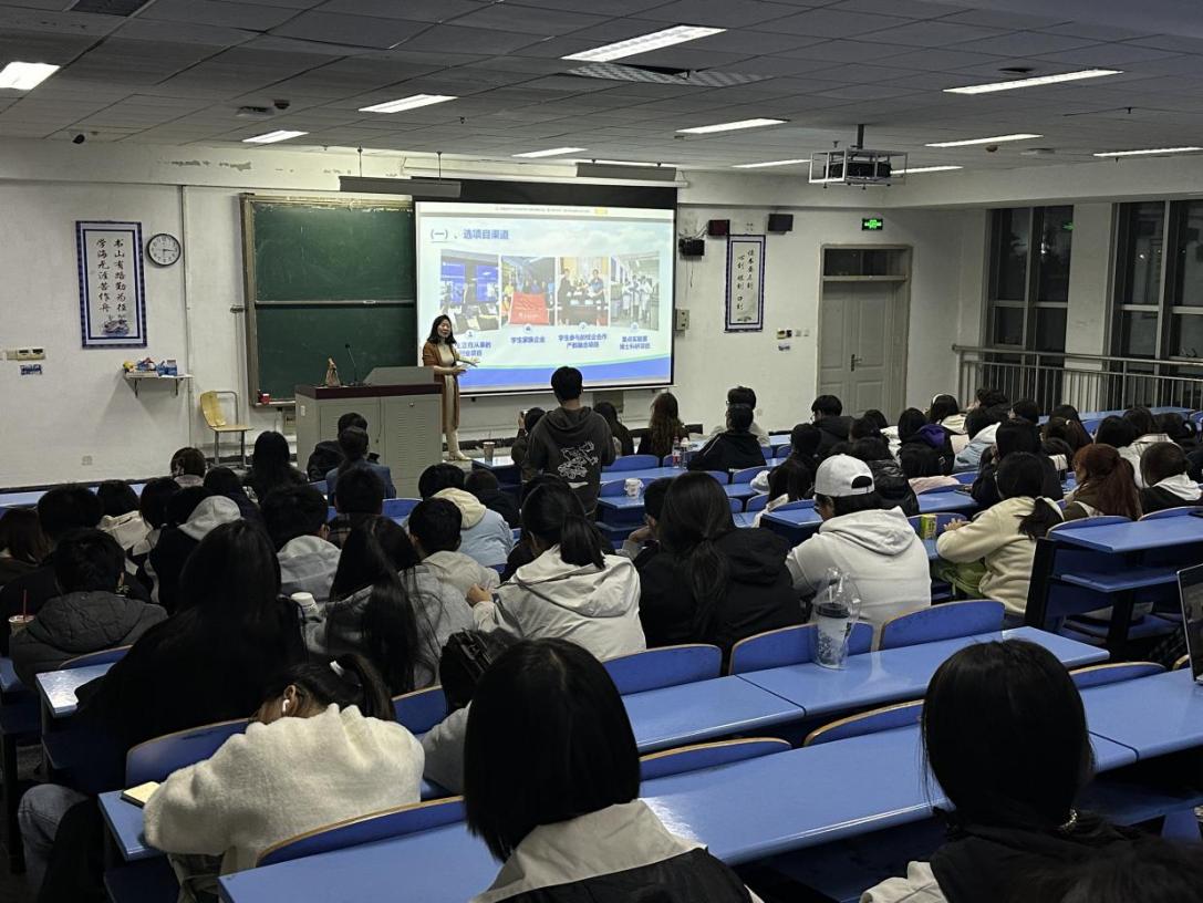 讲座中,池重教授首先清晰地梳理了创业类大赛从选项目渠道、选项目标准,再到选学生团队和选指导老师的完整路径。同时还讲到在职规赛中,金奖PPT内容制作逻辑、成长就业赛道备赛辅导、现场答辩关键技巧等,为准备参加创赛的学生们指明方向。