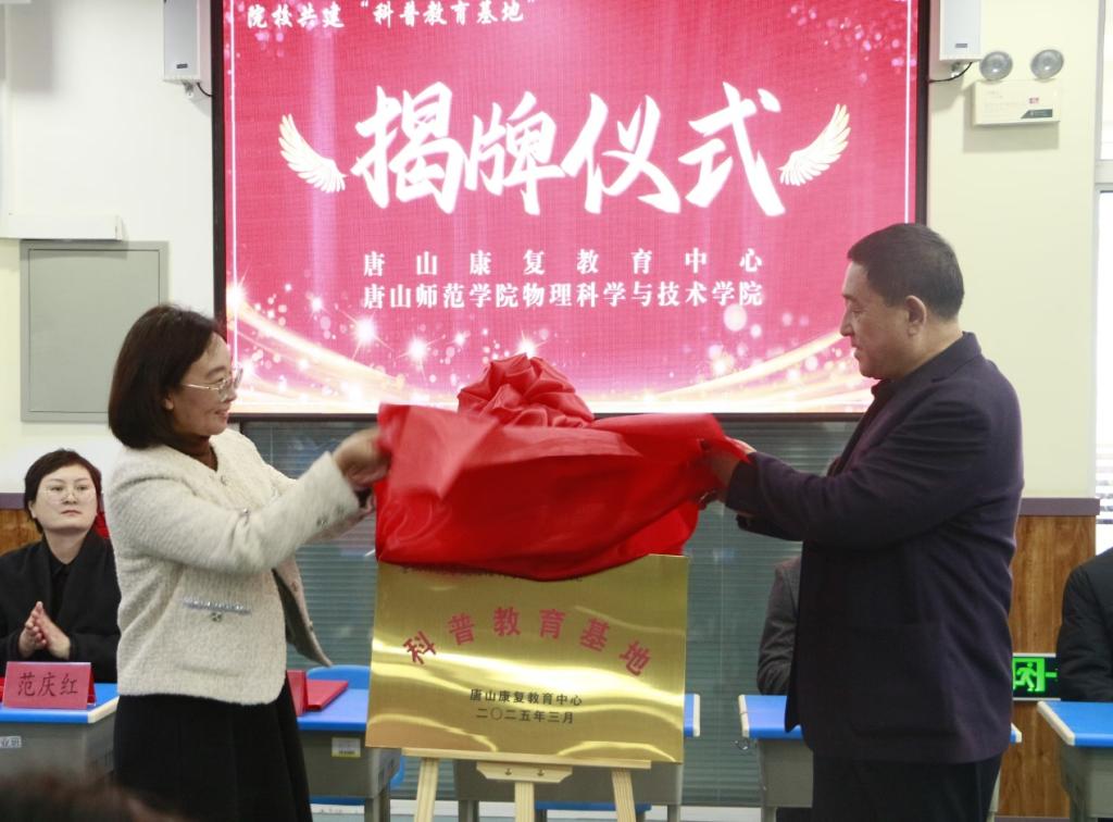 2025年3月12日上午,beat365官方网站物理科学与技术学院携手唐山康复教育中心举行了共建“科普教育基地”启动揭牌仪式。物理科学与技术学院党总支书记李雪梅携班子成员、科普辅导教师和科普队员来到唐山康复教育中心,同唐山康复教育中心主任吴军、副主任范庆红等一起出席了活动。