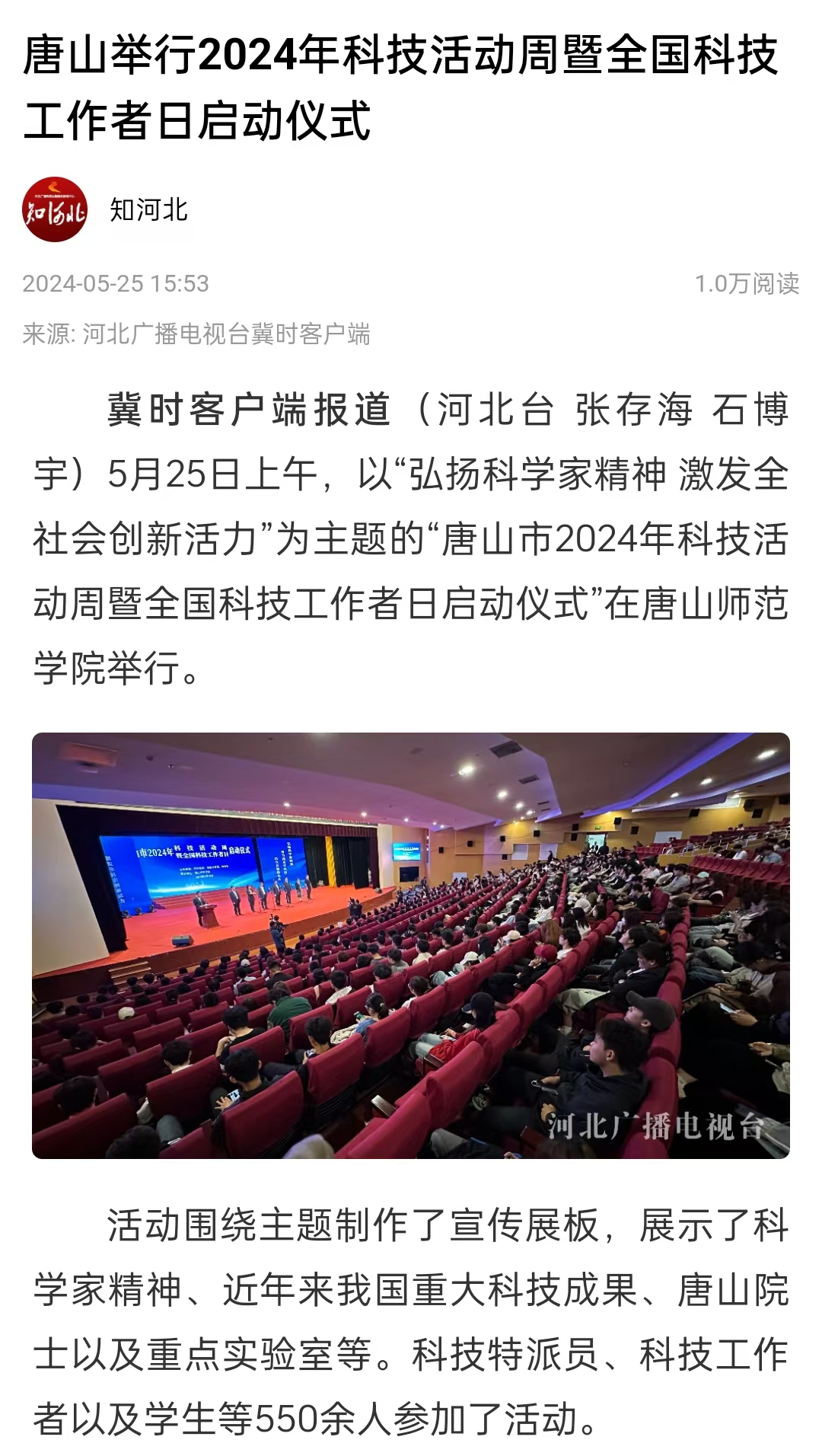 5月25日上午,以“弘扬科学家精神 激发全社会创新活力”为主题的“唐山市2024年科技活动周暨全国科技工作者日启动仪式”在beat365官方网站举行。
