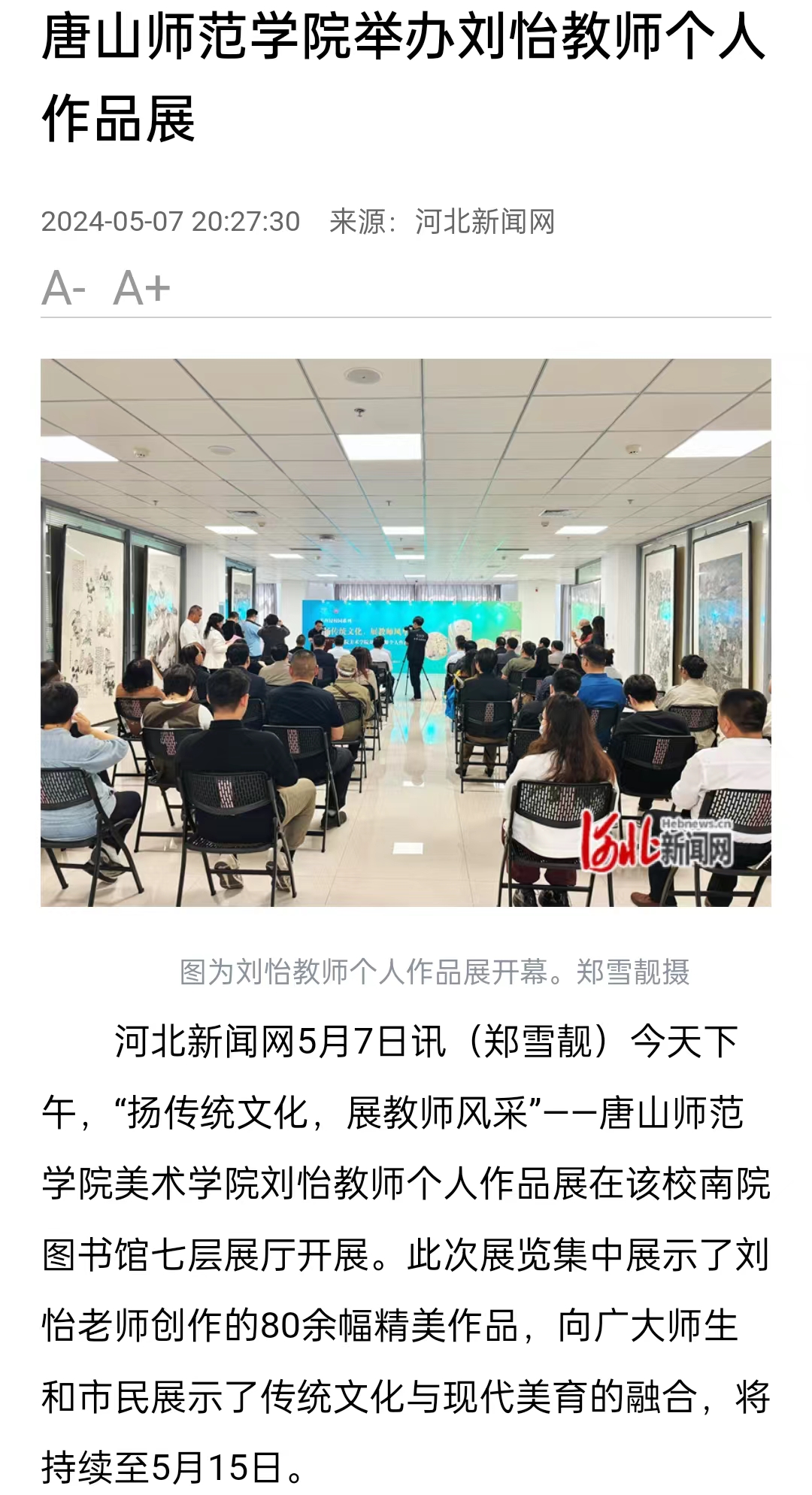 今天下午,“扬传统文化,展教师风采”——beat365官方网站美术学院刘怡教师个人作品展在该校南院图书馆七层展厅开展。此次展览集中展示了刘怡老师创作的80余幅精美作品,向广大师生和市民展示了传统文化与现代美育的融合,将持续至5月15日。
