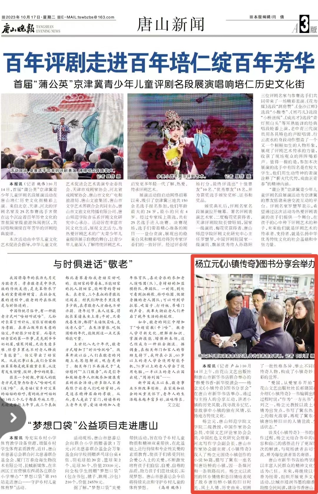 《唐山晚报》——杨立元《小镇传奇》图书分享会举办