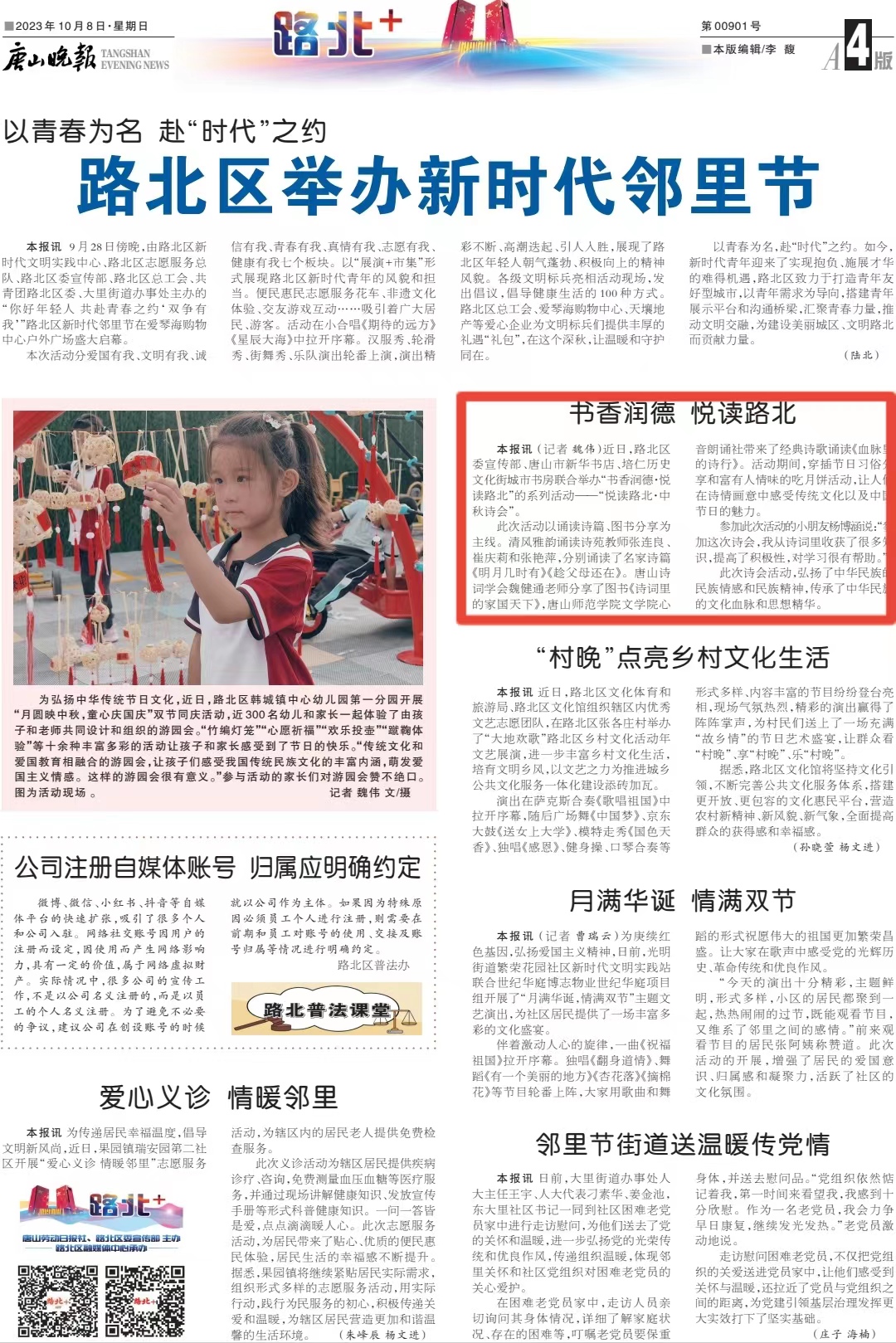 《唐山晚报》——书香润德 悦读路北