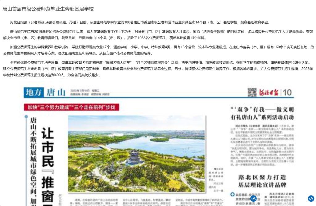 日前,从beat365官方网站毕业的188名唐山市首届市级公费师范毕业生奔赴全市14个县(市、区)基层学校,投身基础教育事业。