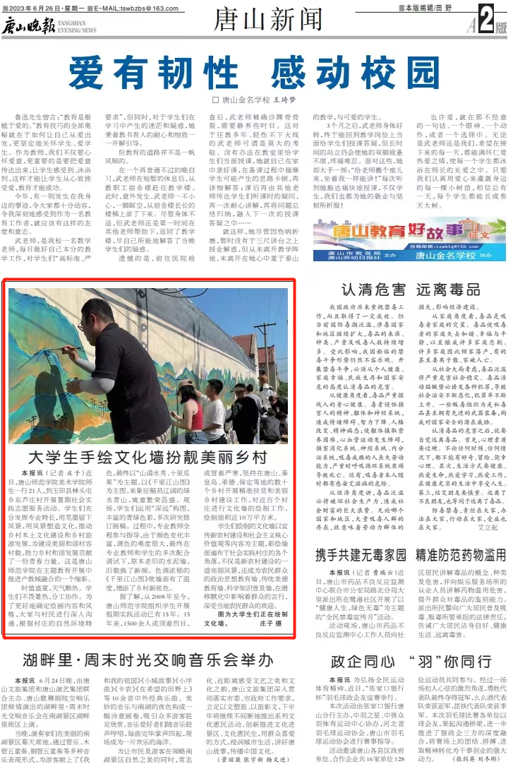 《唐山晚报》——大学生手绘文化墙扮靓美丽乡村