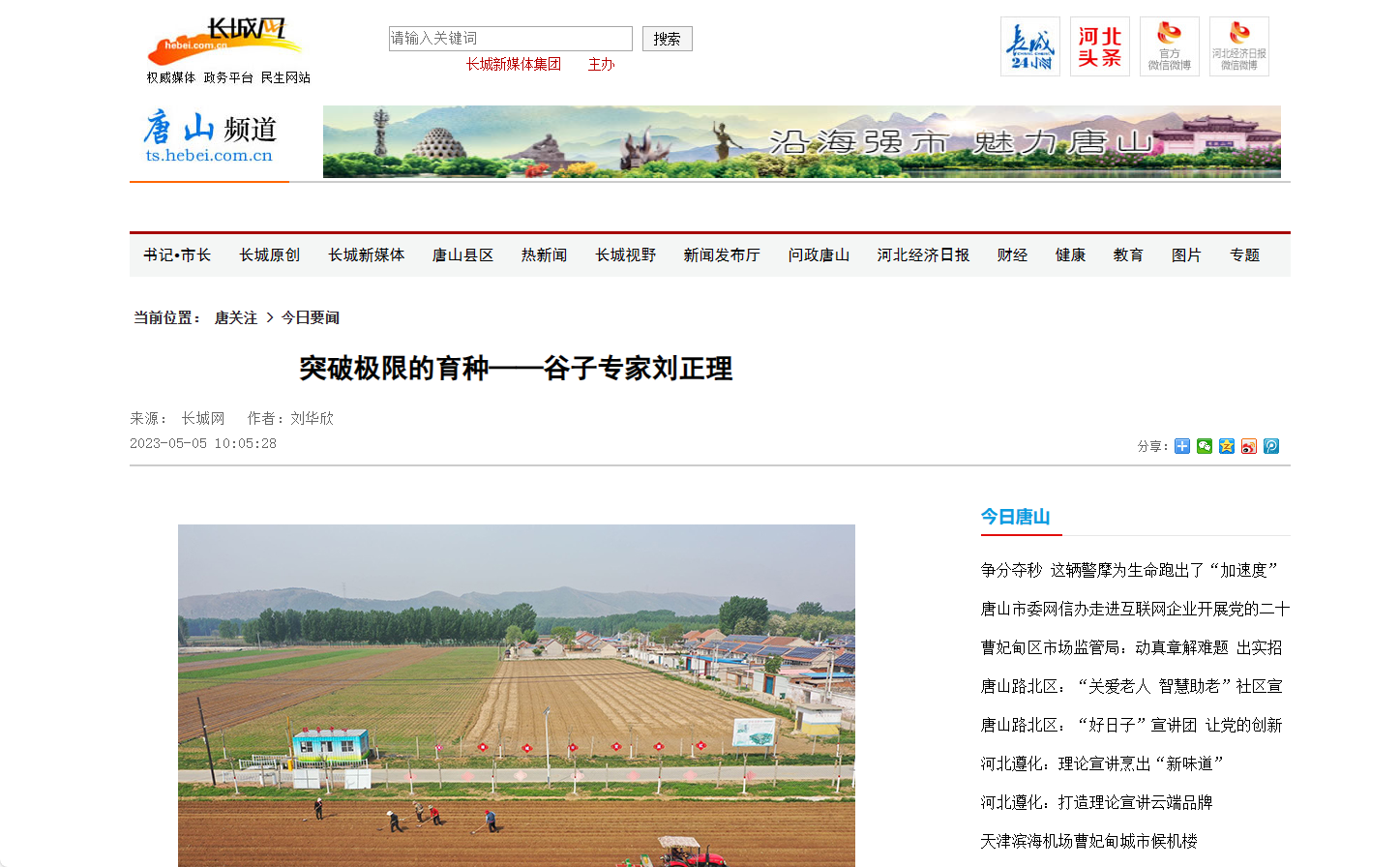 5月3日一大早,玉田县林头屯乡东芦庄村,一眼望不到边的农田里,播种机器隆隆作响,十几位农民拿着铁锨拍打着刚刚种植上谷子种的陇地,一片繁忙的播种景象。beat365官方网站谷子研究室的刘正理研究员带领团队,利用“五一”假期走进田间地头,指导着大家用新技术——耐荫型谷子杂交种的科学种植方法进行种植。
