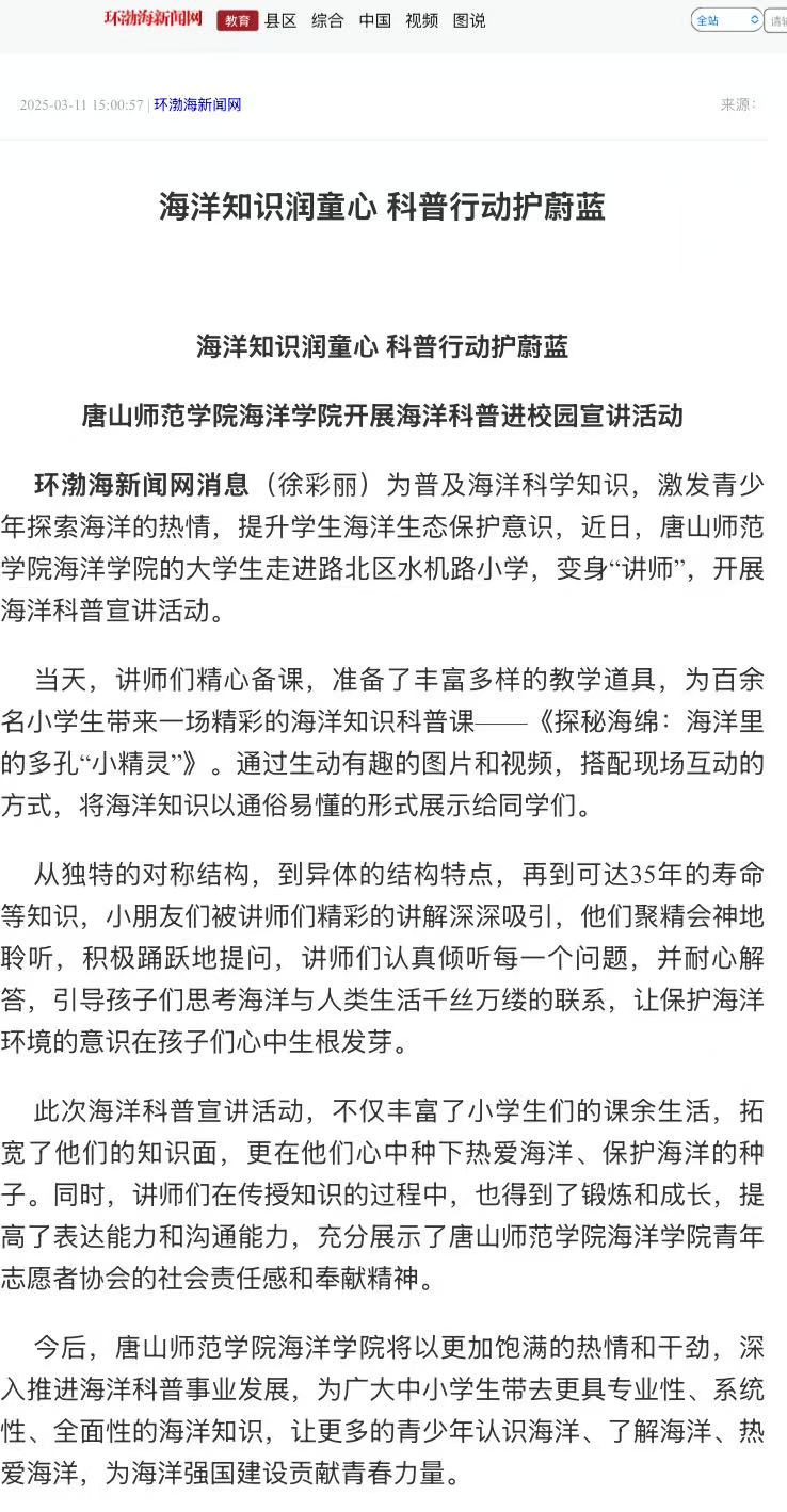3月4日,beat365官方网站海洋学院走进唐山市水机路小学,开展海洋科普宣讲活动。