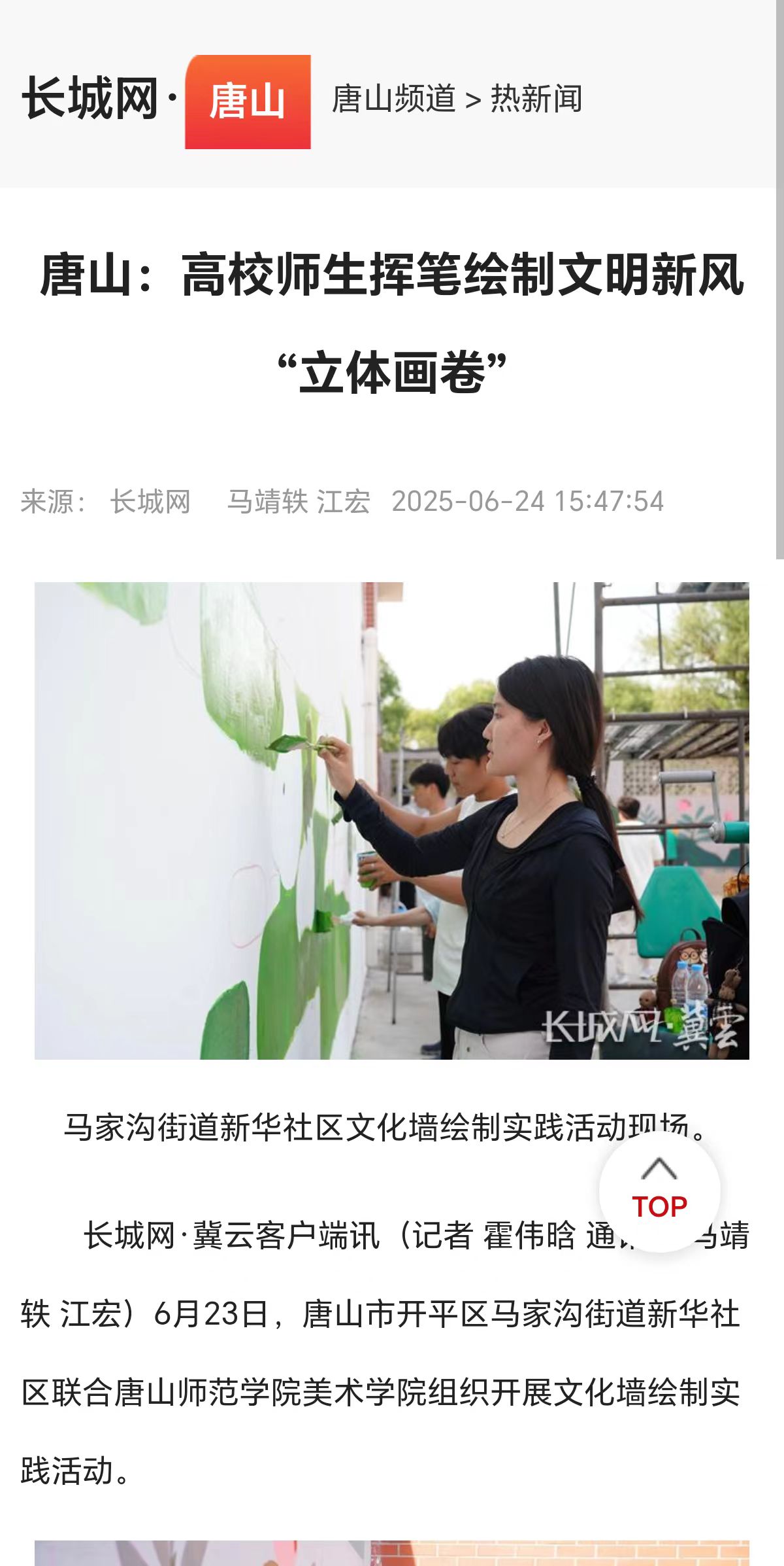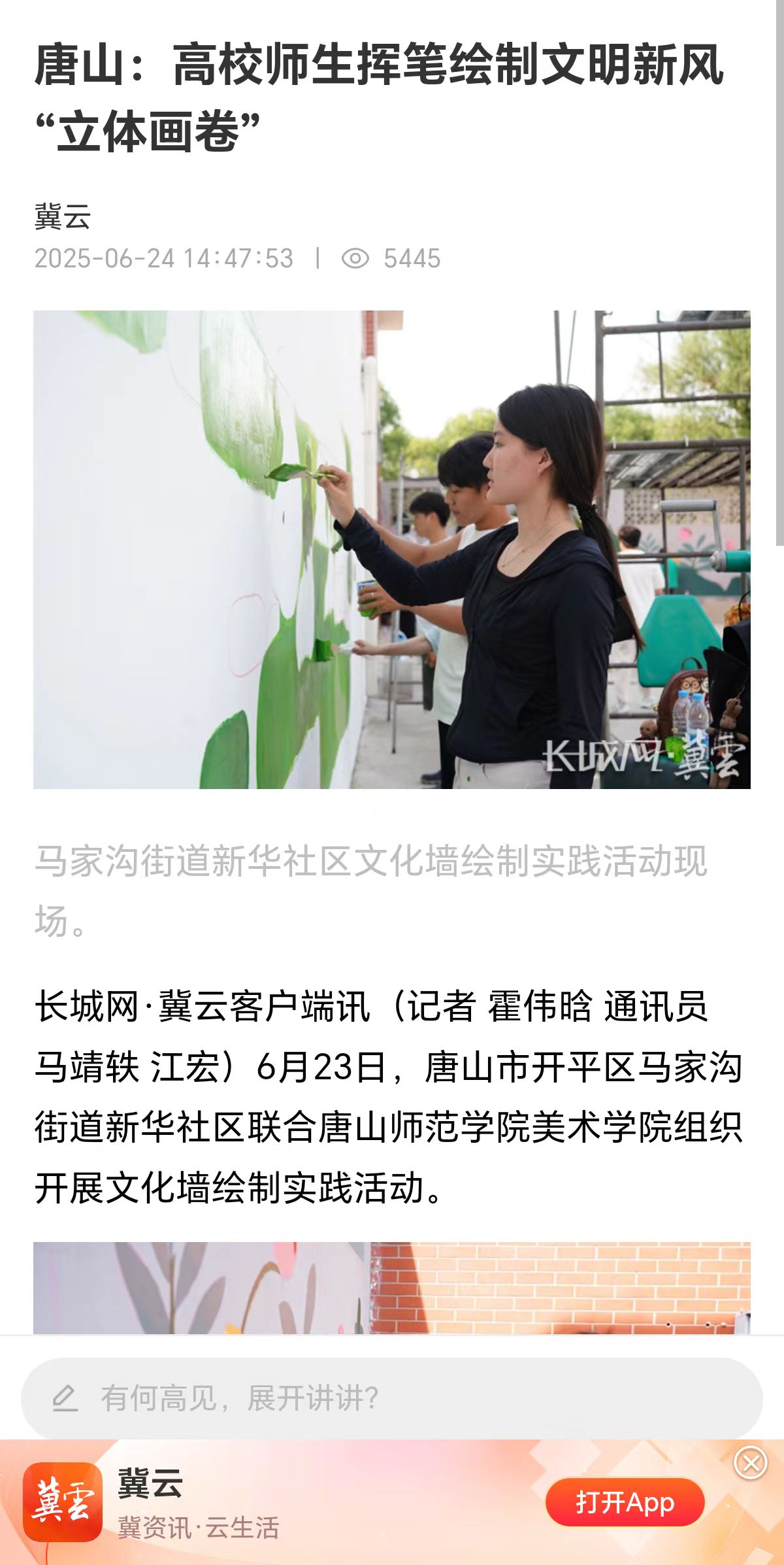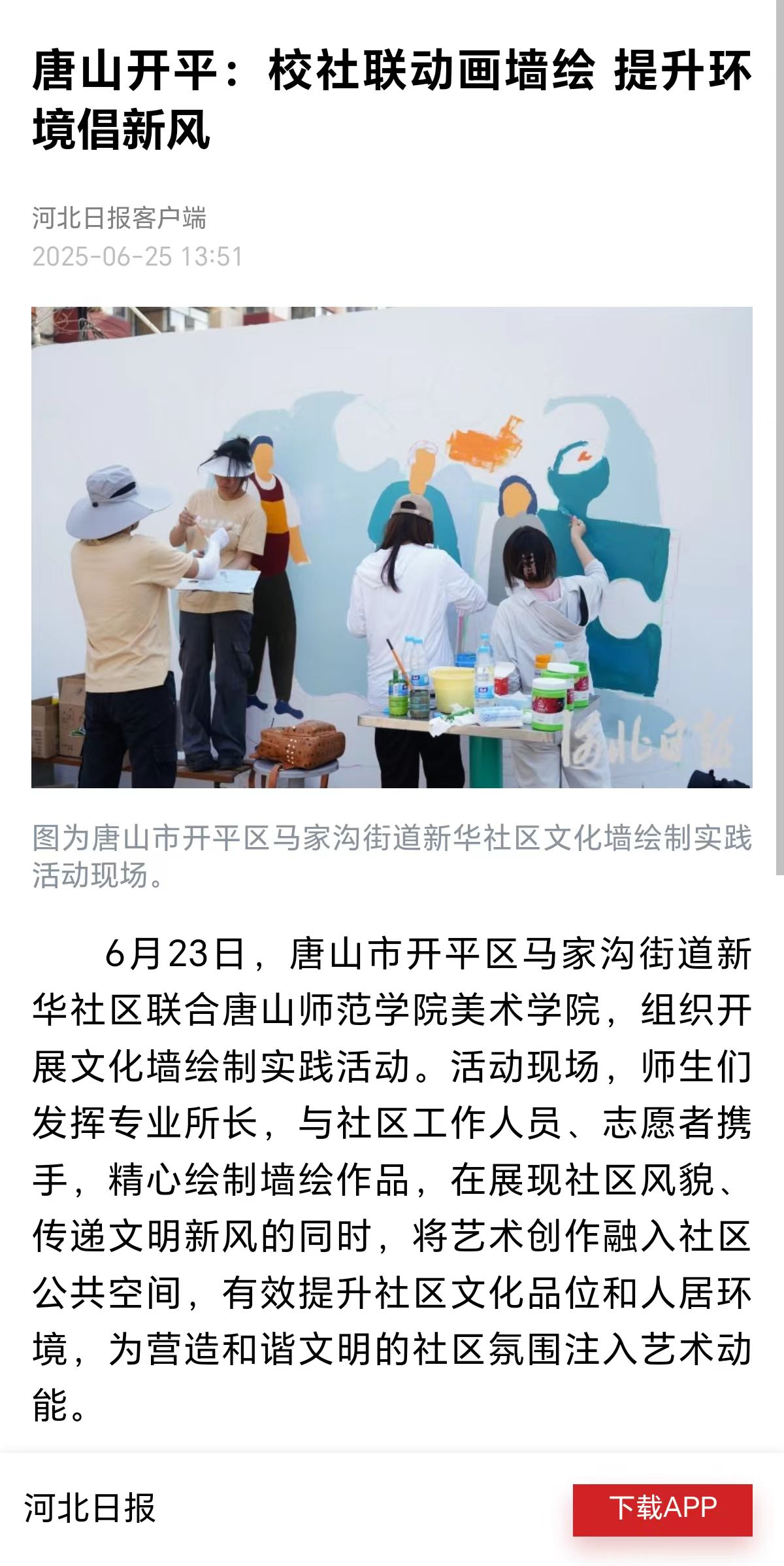 6月23日,唐山市开平区马家沟街道新华社区联合beat365官方网站美术学院,组织开展文化墙绘制实践活动。
